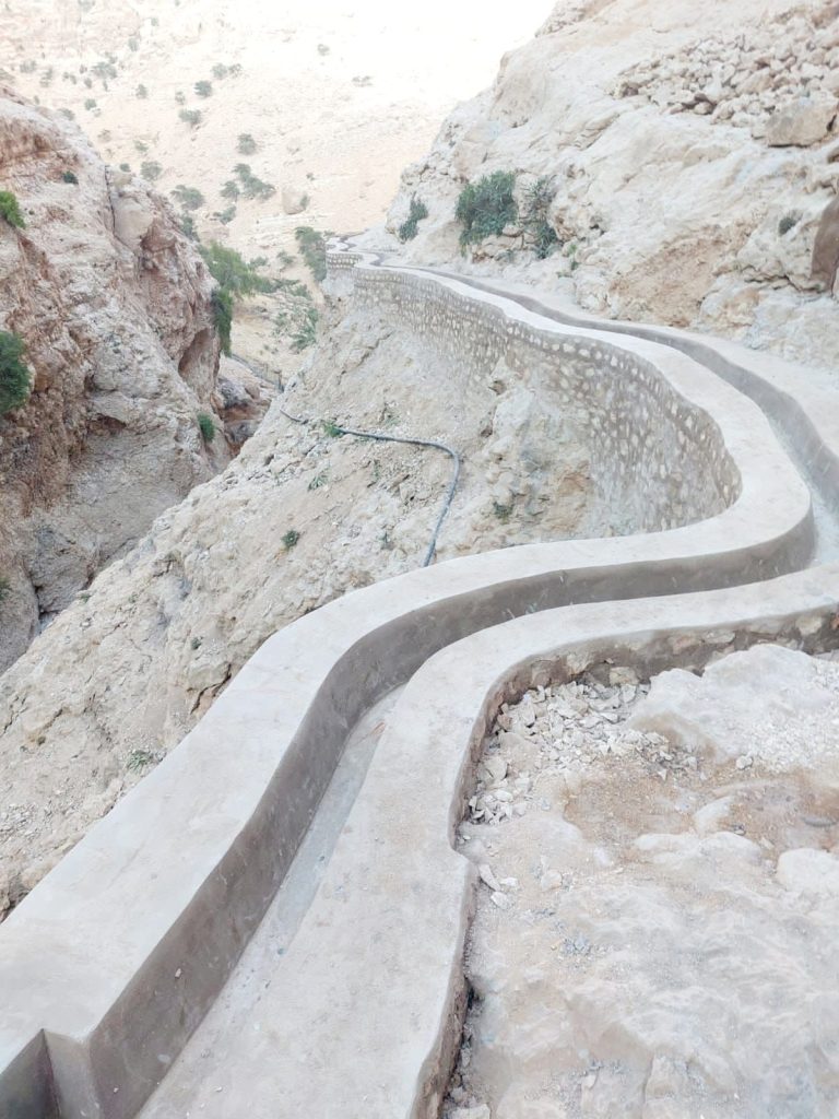 وشملت أعمال الصيانة ترميم حوض التجميع، وتأهيل القناة المكشوفة بطول 150 مترًا، وإنشاء مسار محاذٍ لها، إضافة إلى ترميم أجزاء من الجسور الحاملة للقناة الناقلة للمياه إلى المزارع. كما تم إنشاء مدرّج للجدار الحامل للقناة المارة بمجرى الوادي بهدف تهدئة تدفق المياه وحماية القناة من الانجراف، إلى جانب وضع لوحة تعريفية بالفلج والقرية.