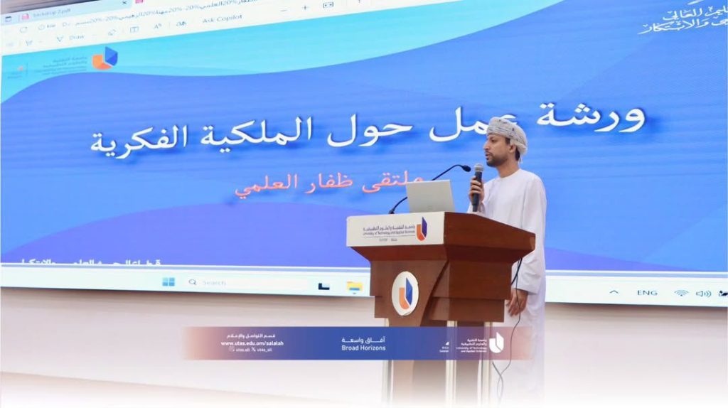 • تقديم ورشة عمل في جامعة السلطان قابوس حول مفاهيم الملكية الفكرية وتطبيقاتها.