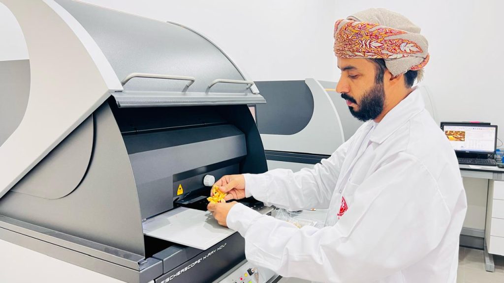 وأضاف أن المختبر يقوم بدمغ المشغولات والسبائك وفق العيارات القانونية العُمانية بعد استكمال التحاليل الدقيقة، ما يضمن موثوقية المنتجات المتداولة ومنحها التراخيص اللازمة وفق قانون الرقابة على المعادن الثمينة. كما ينفذ المختبر عمليات تفتيش دورية وعشوائية على محلات بيع وصياغة الذهب للتأكد من مطابقة المنتجات للمواصفات، ويصدر شهادات تحليل للراغبين في توثيق مشغولاتهم. وتمثل هذه الخطوات جزءًا من جهود مستمرة لترسيخ مستوى عالٍ من الكفاءة المؤسسية والاعتماد على أنظمة رقمية حديثة تسهم في رفع جودة وسرعة الخدمات الحكومية.