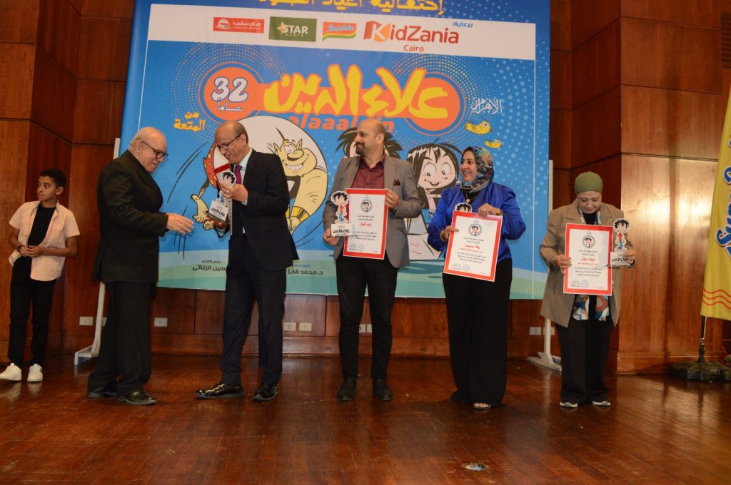 كرمت مجلة علاء الدين في احتفاليتها بأعياد الطفولة، برئاسة تحريرها الكاتب الصحفي حسين الزناتي، عددًا من الشخصيات البارزة التي ساهمت في إثراء المحتوى الثقافي ودعم الإبداع الموجّه للأطفال. وشمل التكريم كلًا من ولاء محمد، مدير الحديقة الثقافية بالسيدة زينب، والكاتب المبدع وليد كمال، والأستاذة نجلاء علام، رئيس تحرير مجلة قطر الندى، والكاتب الكبير أحمد زحام، أحد أوائل الكتّاب الذين أثروا مجلة علاء الدين بكتاباتهم. وجاء هذا التكريم تقديرًا لإسهاماتهم المتميزة ودورهم في دعم الإبداع وتنمية المواهب.