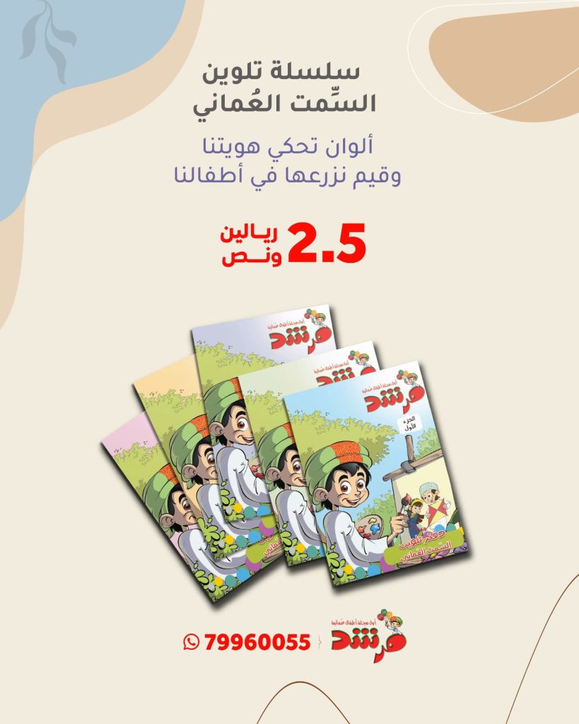دشّنت مجلة مرشد للأطفال سلسلة تثقيفية جديدة موجّهة للأطفال من عمر 4 إلى 9 سنوات، تحت عنوان «سلسلة تلوين السِّمت العُماني»، في إطار رسالتها الهادفة إلى غرس القيم الوطنية وتعزيز الاعتزاز بالهوية العُمانية بأسلوب تربوي مبسّط وجذّاب.