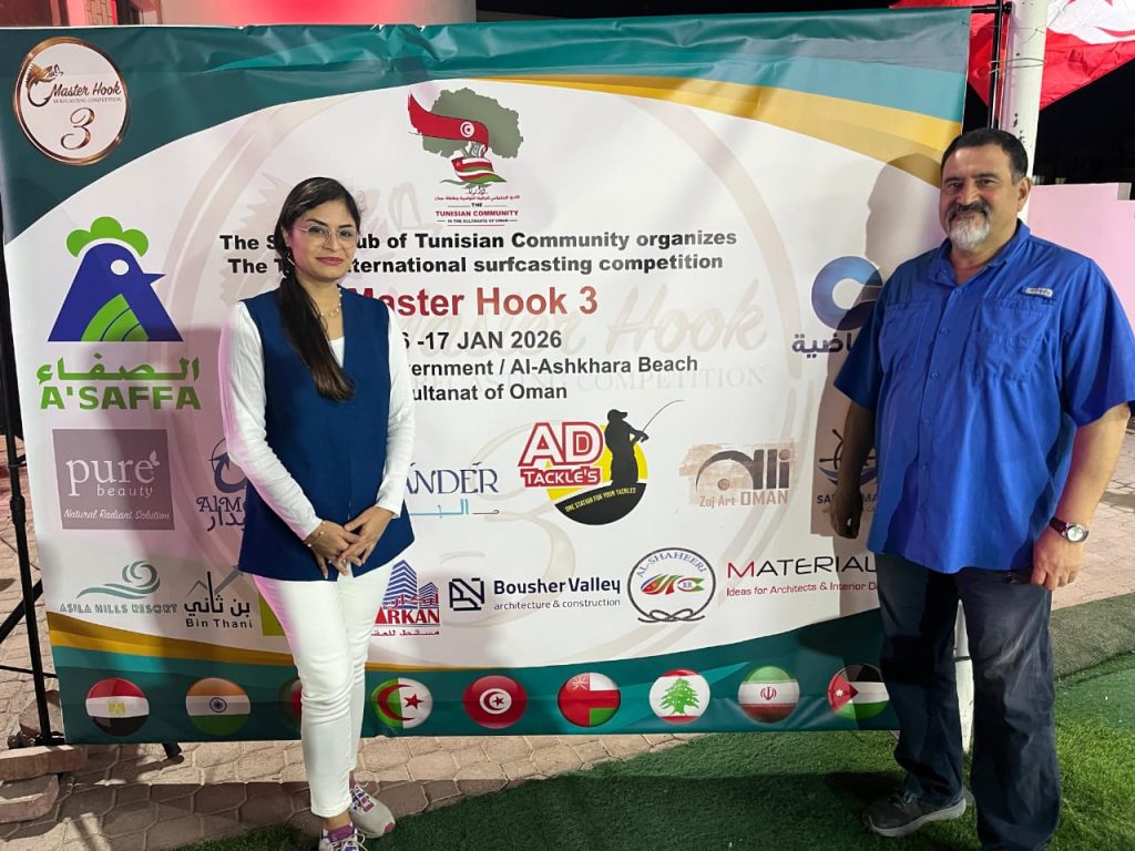 تحت رعاية سعادة شيراز الشابي القائم بالأعمال بسفارة الجمهورية التونسية بسلطنة عمان أقيم مساء الجمعة ٩ يناير 2026 حفل تدشين مسابقة ماستر هوك -3 للصيد الرياضي من الشاطئ بمقر النادي الإجتماعي للجالية التونسية بمسقط حضر الحفل منذر عبد الكافي رئيس النادي وعدد من المسؤولين والمشاركين والمدعوين.