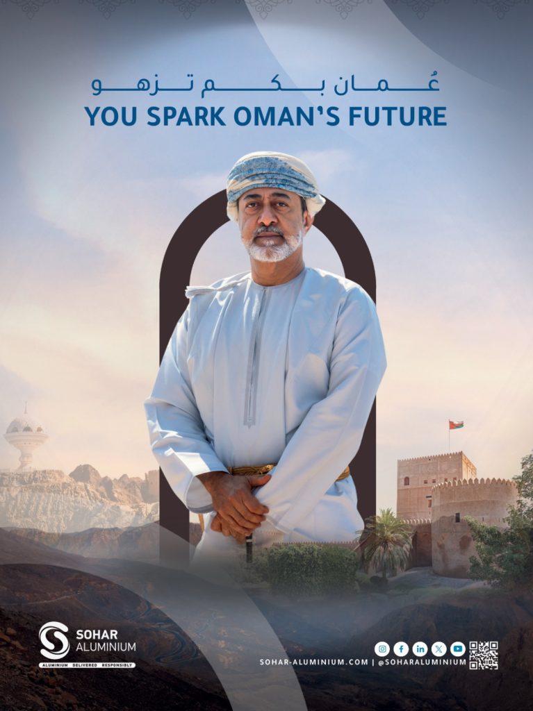 صحار ألمنيوم تهنئ المقام السامي عبر “الواحة” في عددها الخاص رقم (253)