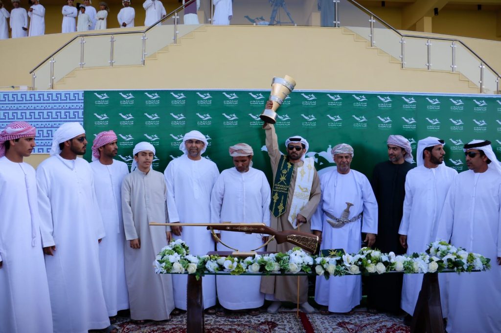 وفي ختام منافسات اليوم الأول، قام سعادة الشيخ الدكتور فيصل بن علي الزيدي والي منح، راعي السباق، بتكريم الفائزين بالمراكز الأولى في أشواط الرموز للفترة المسائية.