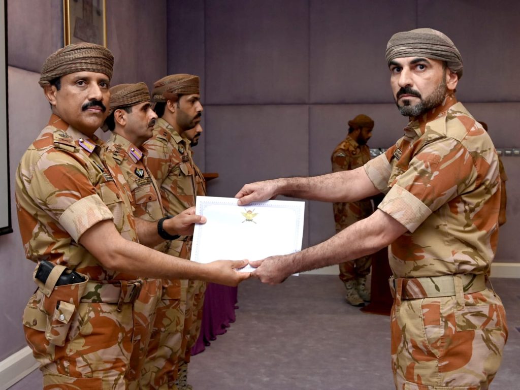 وقلّد معالي الفريق أول وزير المكتب السلطاني ميداليتي الخدمة الممتازة والثناء السلطاني لعدد من كبار الضباط والضباط وضباط الصف بقوة السلطان الخاصة؛ تقديرًا لجهودهم وتفانيهم في أداء واجبهم الوطني.