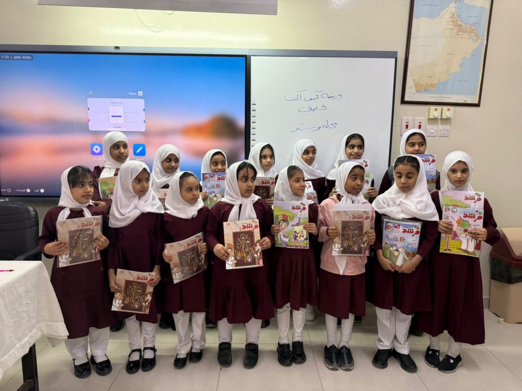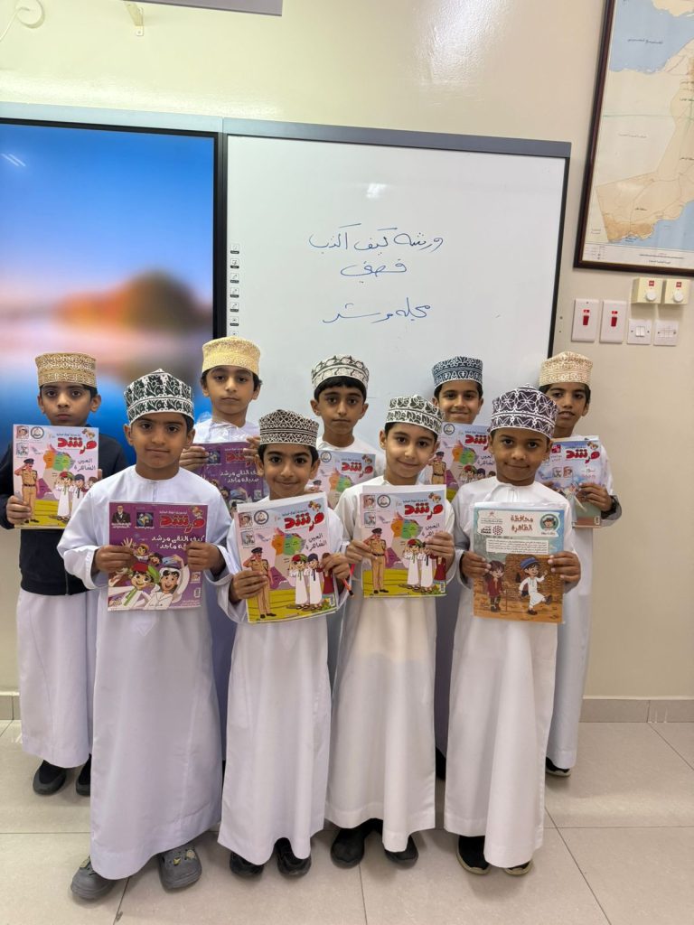 نظّمت مجلة مرشد للأطفال ورشة تدريبية لطلبة مدرسة الثناء للتعليم الأساسي بعنوان “كيف أرسم قصتي”، قدّمها الأستاذ حمود بن علي الطوقي، وذلك في إطار جهود المجلة لتنمية مهارات الكتابة الإبداعية لدى الطلبة وتشجيعهم على التعبير عن أفكارهم من خلال القصة والرسم.