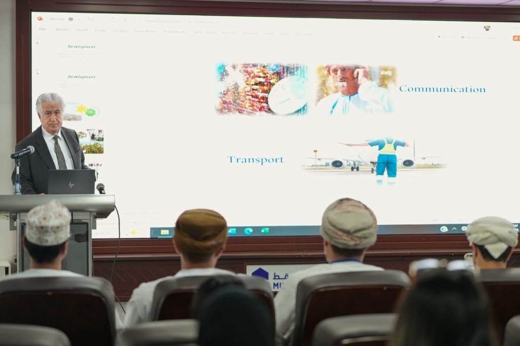وتناولت المحاضرة قراءة تحليلية لمسار التنمية في سلطنة عُمان، حيث استعرض المحاضر أبرز الإنجازات التي تحققت خلال العقود الماضية، والتحديات التي واجهت الاقتصاد الوطني، إضافة إلى الفرص الواعدة التي يمكن البناء عليها خلال المرحلة المقبلة.