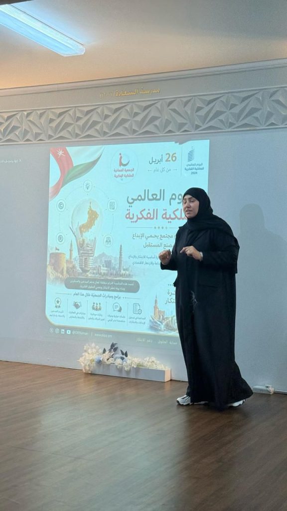 وقدمت الأستاذة تركية ناجي اليافعي، عضو مجلس إدارة الجمعية العمانية للملكية الفكرية، نبذة تعريفية حول أهمية هذه المناسبة العالمية، مستعرضة الدور الذي تضطلع به الجمعية في نشر ثقافة الملكية الفكرية وتعزيز الوعي المجتمعي بأهميتها، لا سيما في الأوساط التعليمية والشبابية.