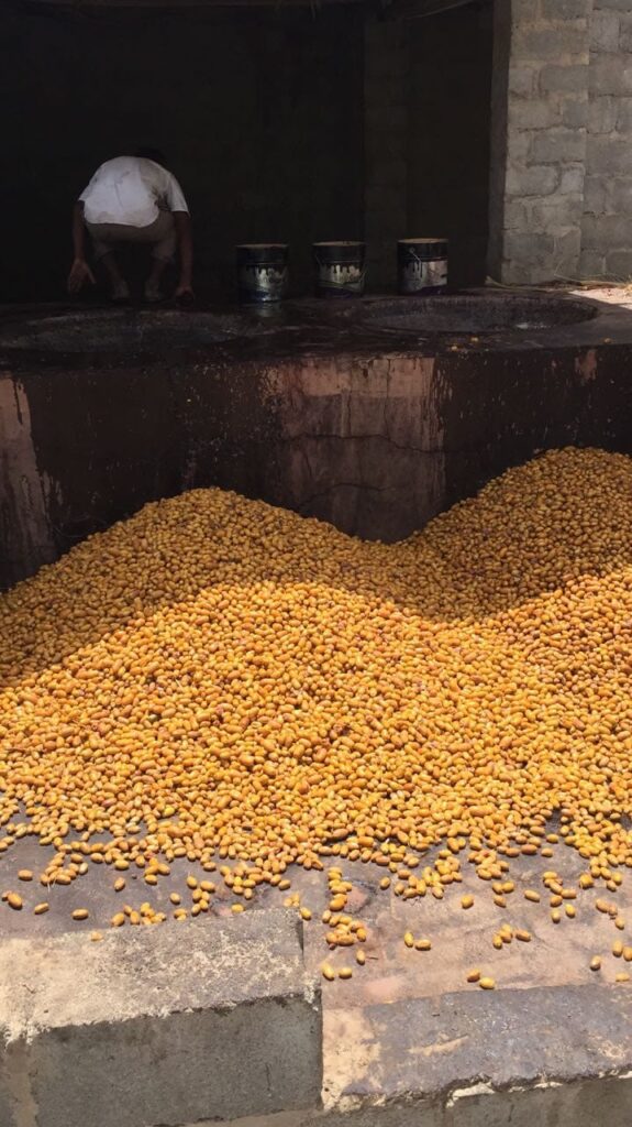 تبدأ عملية تبسيل نخلة “المبسلي” في ولاية إبراء عند حصاد البسر من النخلة المذكورة، حيث يتم عن طريق الجداد ثم خرطه من العذوق.